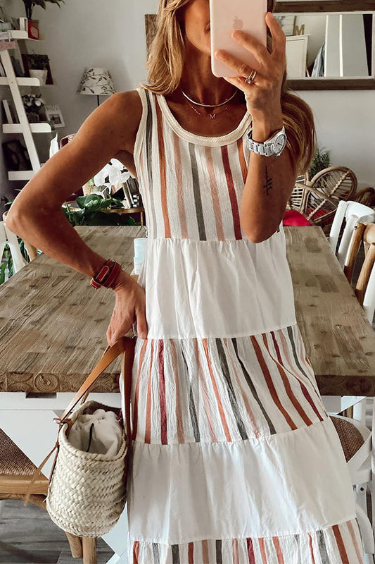 Comfort for Summer Linen Blend Stripe Relaxed Tank Midi Dress