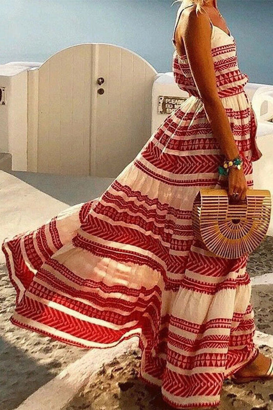 SLEEVELESS COLORFUL PRINTING MAXI DRESS